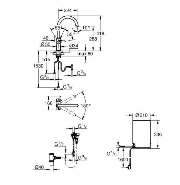 | Robinets multifunctionél | Eau froid/chaud/bouillant |