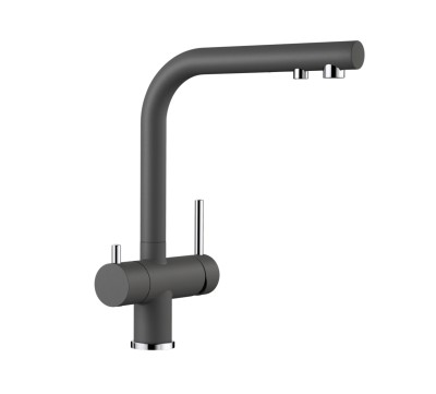 SpécificationsMitigeur 3 en 1 pratique avec levier de commande eau chaude/froide à droite et levier de commande eau filtrée à gauche