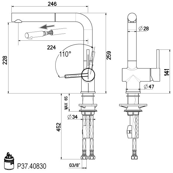 KVR Eéngreepsmengkraan met uittrekbare uitloop D 10371983