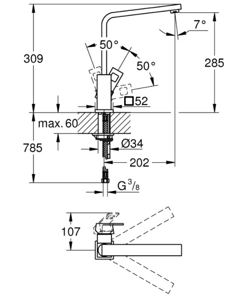 Grohe Eurocube mitigeur évier L-bec, SuperSteel