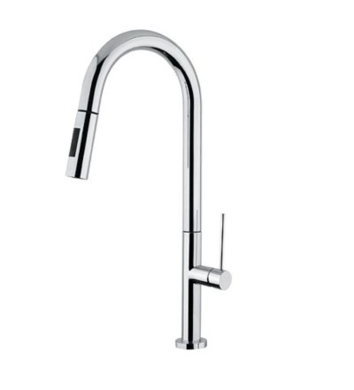 Le mitigeur Loreto de Boretti avec douchette extensible est un bon choix pour chaque amateur de cuisine. Une douchette extensible n'est non seulement pratique, mais vous fait également gagner du temps. Le rinçage des casseroles ou des légumes devient un jeu d'enfant. Le design moderne en chrome our brosse chrome est caractéristique de ce mitigeur de cuisine à levier de Boretti.Mitigeur de cuisine avec mitigeurs d'arrêt à filtre