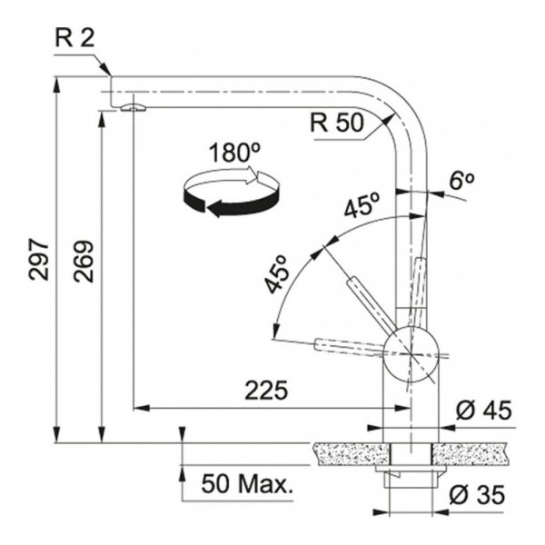 CARACTERISTIQUESMitigeur à bec orientable Haute pression