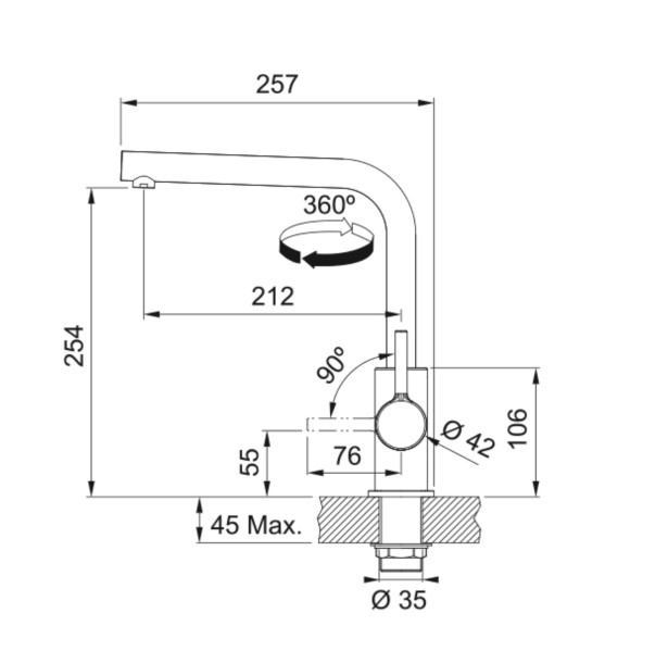 CARACTERISTIQUESMitigeur à bec orientable Haute pression
