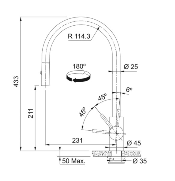 CARACTERISTIQUESMitigeur à bec extractible Haute pression