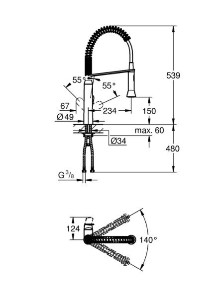 Grohe Minta mitigeur évier, bec L, avec douchette extractible, 2 jets, SuperSteel 30274 DC 0