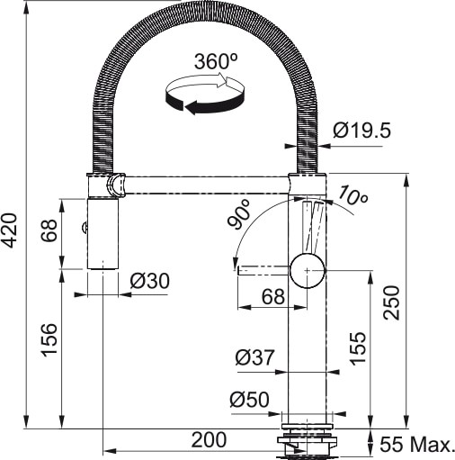 Franke Pescara - Mitigeur semi-professionnel avec bec mobile L / Side lever / Inox
