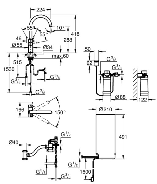 GROHE ChildLock poussez le bouton pour de l'eau bouillante