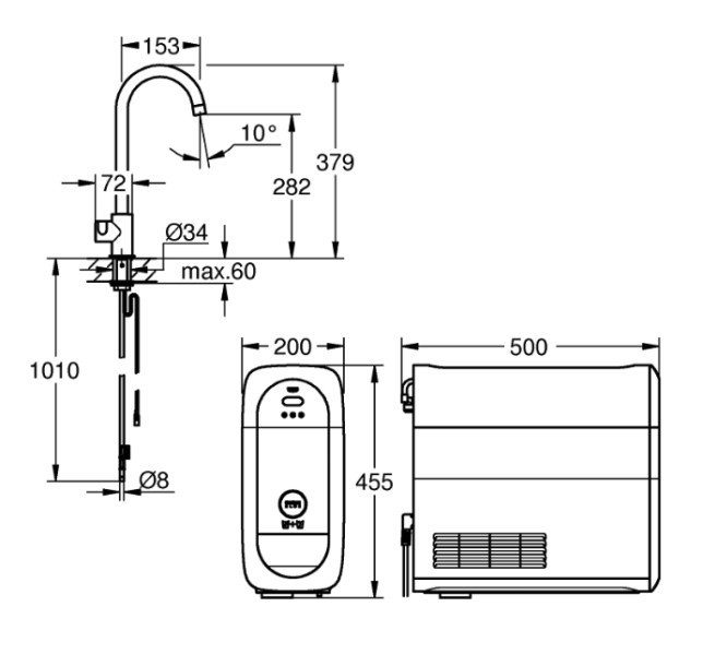 | Robinets multifunctionél | Eau froid/filtré/gazeuse |
