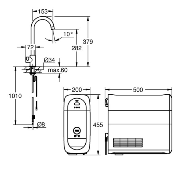 | Robinets multifunctionél | Eau froid/filtré/gazeuse |