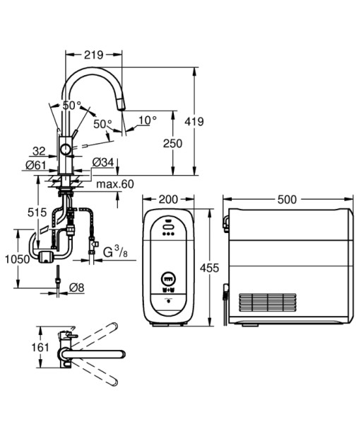 | Robinets multifunctionél | Eau froid/filtré/gazeuse |