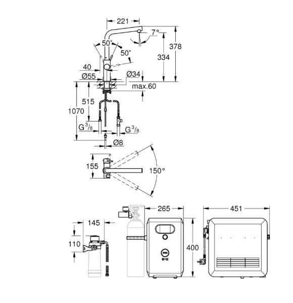 | Robinets multifunctionél | Eau froid/filtré/gazeuse |