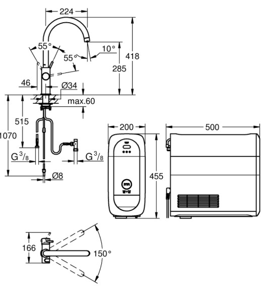| Robinets multifunctionél | Eau froid/filtré/gazeuse |