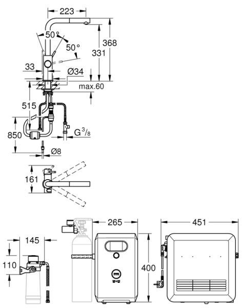 | Robinets multifunctionél | Eau froid/filtré/gazeuse |