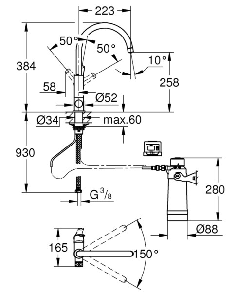 GROHE Blue Mitigeur monocommande pour évier avec système de filtration de l’eau