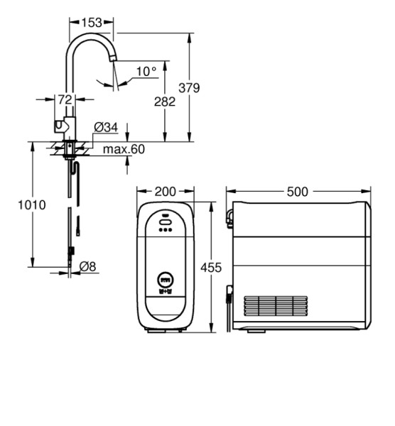 | Robinets multifunctionél | Eau froid/filtré/gazeuse |