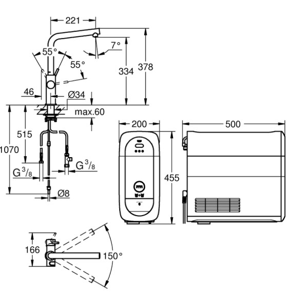 | Robinets multifunctionél | Eau froid/filtré/gazeuse |