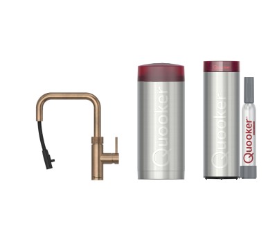 Quooker robinet Flex Square Patine/Laiton avec réservoir Combi (eau bouillante et d'eau chaude limitée) et Cube (Eau fraîche, gazeuse et filtrée) FXSPTB - COMBI - CUBE FXSPTB - COMBI - CUBE