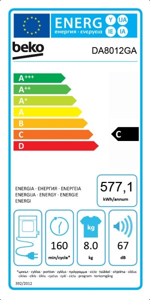 8KG - C - Programme court - Sèche-Linge évacuation d'air / Beko DA 8012 GA