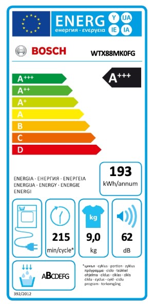 Contrôle de la consommation énergétique annuelle sur les sèchelinge électroniques - NOUVEAU (2010/30/CE) (kWh) : 193,0
