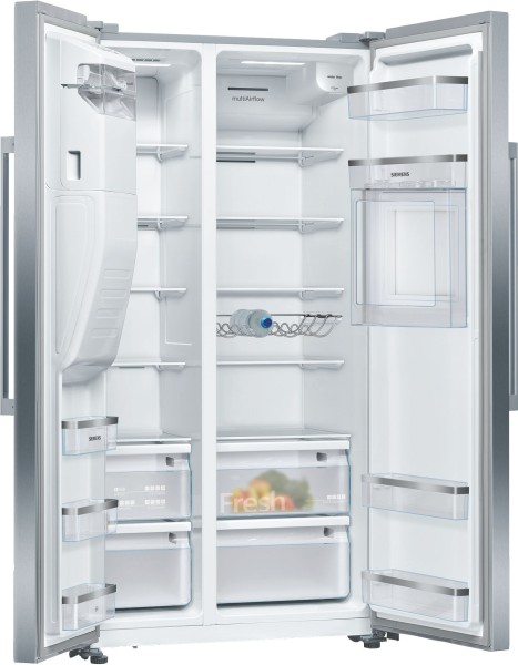 179cm - 91cm large - NoFrost - Distributeur d'eau et de glaçe par raccordement d'eau fixe - Inox - Side by Side / Siemens