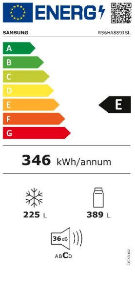 178cm - 91cm large - 389L+225L - NoFrost - distributeur d'eau et de glaçon - Raccordement d'eau fixe - SmartConversion - Side by Side Family Hub / Samsung RS 6HA8891 SL
