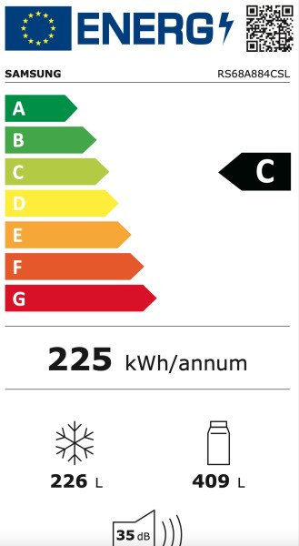 178cm - 91cm large - 409L+225L - Noir - NoFrost - Distributeur de glace et d'eau par raccordement d'eau fixe - SmartConversion - Side by Side / Samsung RS 68A884CB 1