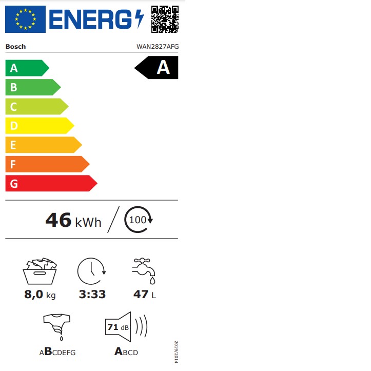 La classe énergétique indique le degré d'économie du lave-linge. Elle est indiquée sur l'étiquette énergétique, qui est établie par l'Union européenne. Actuellement, la classe énergétique A pour les lave-linge est la plus efficace. La consommation de votre lave-linge est au moins aussi importante que son prix d'achat. En d'autres termes, un nouveau lave-linge plus cher est finalement moins cher s'il consomme peu d'énergie. Moins il y a de pertes d'énergie, mieux c'est pour la nature et le portefeuille.