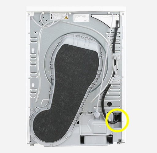 Dans les sèche-linge à pompe à chaleur de Bosch et Siemens, l'évacuation est également située en bas à droite, à l'arrière.