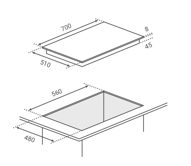 | Placement dans le plan de travail | à affleurer/à encastrer |