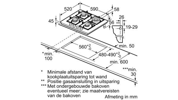 Dimensions d'encastrement (HxLxP): 45 x 560 x 480 mm