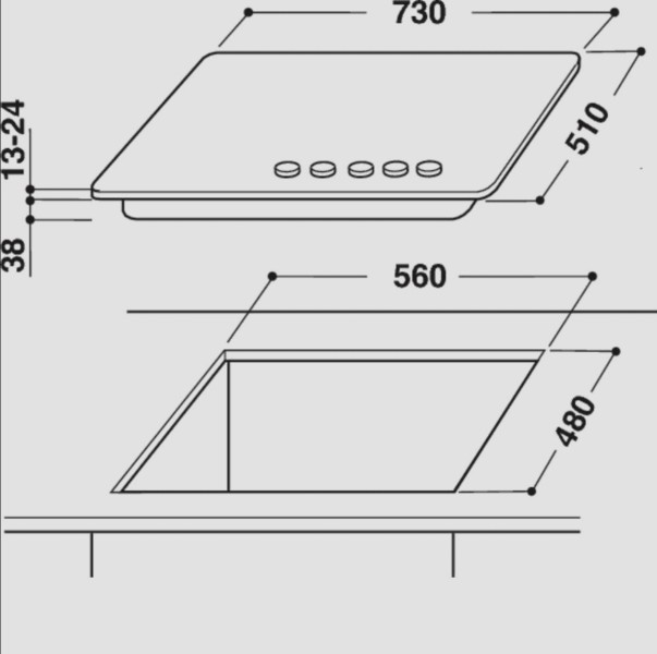 - Dimensions de découpe du plan de travail (LxP) : 560 x 480 mm
