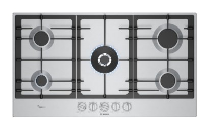 91cm - sans encadrement - 5 zones de cuisson - Inox - Brûleur wok - Plaque de cuisson au gaz / Bosch