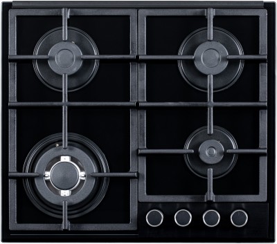 59cm - Piano a filo - 4 zones de cuisson - Brûleur wok - Noir - Plaque de cuisson au gaz / Everglades