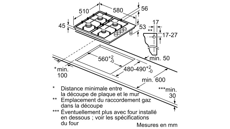 Dimensions d’encastrement (HxLxP): 45 x 560 x (480 492)
