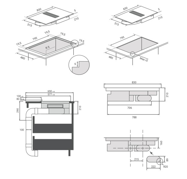 83cm - sans encadrement - 4 zones de cuisson avec zones extensibles - Plaque de cuisson avec aspiration intégrée / Boretti