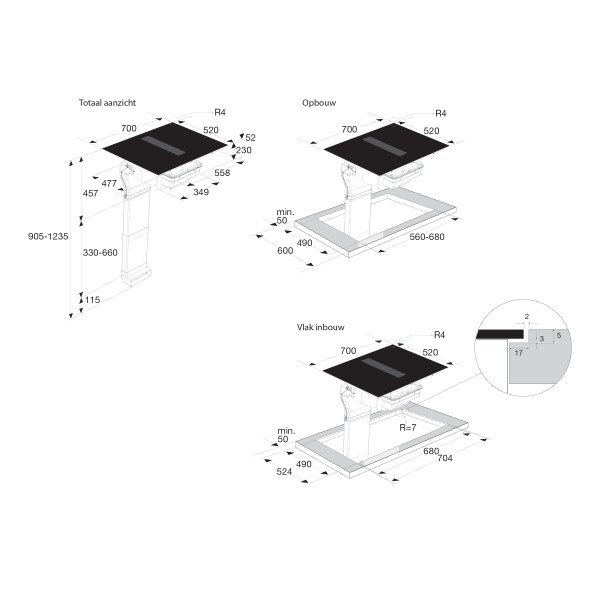 | Placement dans le plan de travail | à affleurer/à encastrer |