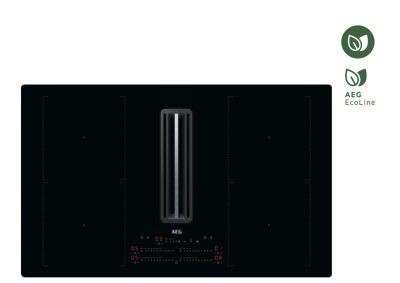 83cm - sans encadrement - 4 zones de cuisson - 2 zones flex - A affleurer/encastrer - Seulement récirculation - Hob²Hood (commande du hotte sur la plaque) - Plaque de cuisson induction avec hotte intégrée / AEG CCE 84779 CB