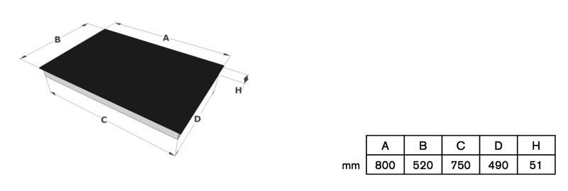 Dimensions du produit (LxPxH) (mm) 800 x 520 x 51