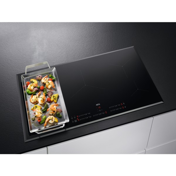 90cm - Cadre en facette - 5 zones de cuisson - 1 zone flexible - Hob²Hood (commander la hotte par la taque) - Plaque de cuisson induction / AEG IKE 95474 FB