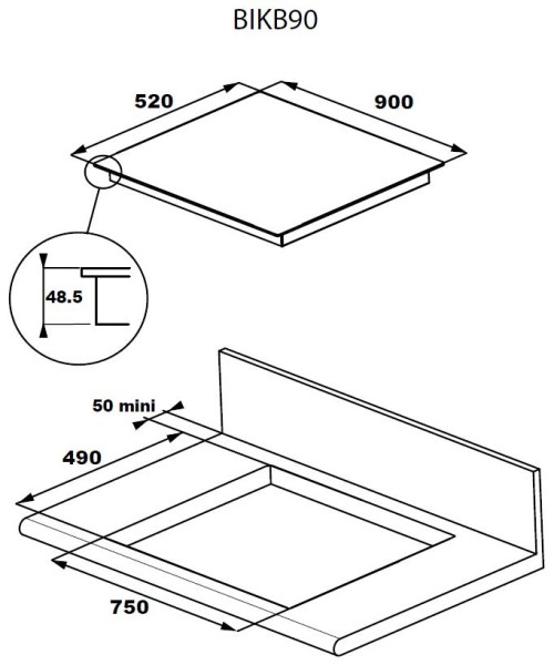 90cm - Sans encadrement - 6 zones de cuisson - Plaque de cuisson induction / Boretti BIKB 90