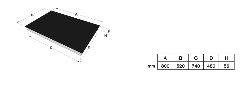 Dimensions du produit (LxPxH) (mm) 800 x 520 x 56