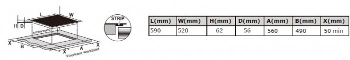 - Dimensions d'installation (HxLxP) 56x560x490 [mm].