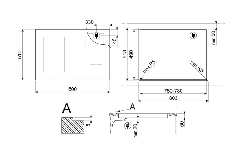 90cm - sans encadrement - 5 zones de cuisson - 2 zones flex - Plaque de cuisson induction / Smeg SI 2M7953 D