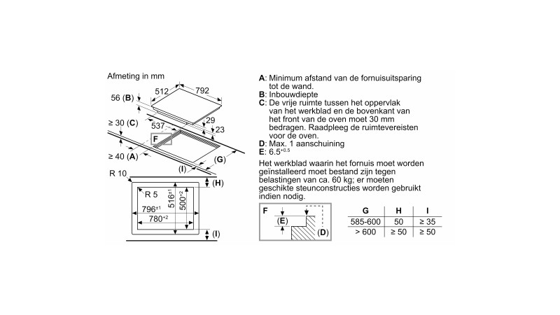 | Placement dans le plan de travail | à affleurer/à encastrer |