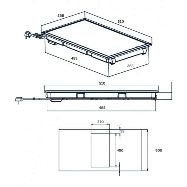 vitrocéramique | 2 zones de cuisson | 288 mm