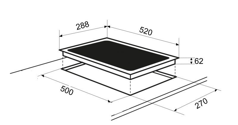 - Dimensions extérieures sans emballage (hxwxd) 62x288x520 [mm].