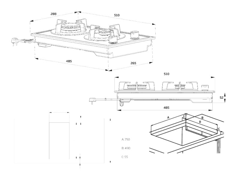 29cm - 2 zones - Gaz - Plaque de cuisson domino / Beko