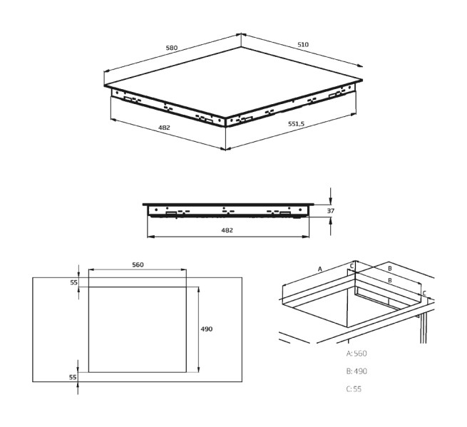560 mm | 490 mm | 5.000 W - 5.999 W