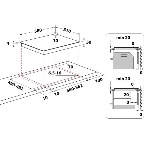 | Largeur de la niche d'encastrement | 560 mm |