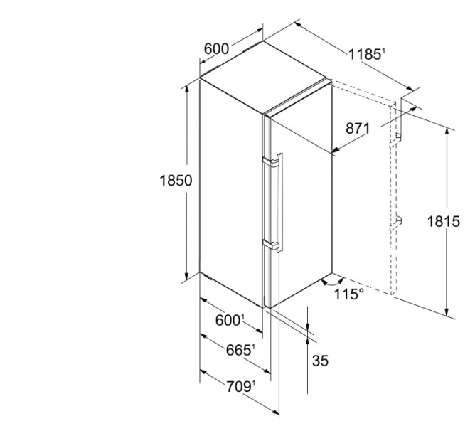 Eéndeurskoelkast met vriesvak (hoger dan 85cm) | D | 185 cm